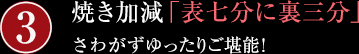 もう1つには、炭の燃焼成分と肉のタンパク質成分との化学反応(アミノール反応)により、肉の表面に独特の香ばしさ、第3の旨味が作られることにあります。
